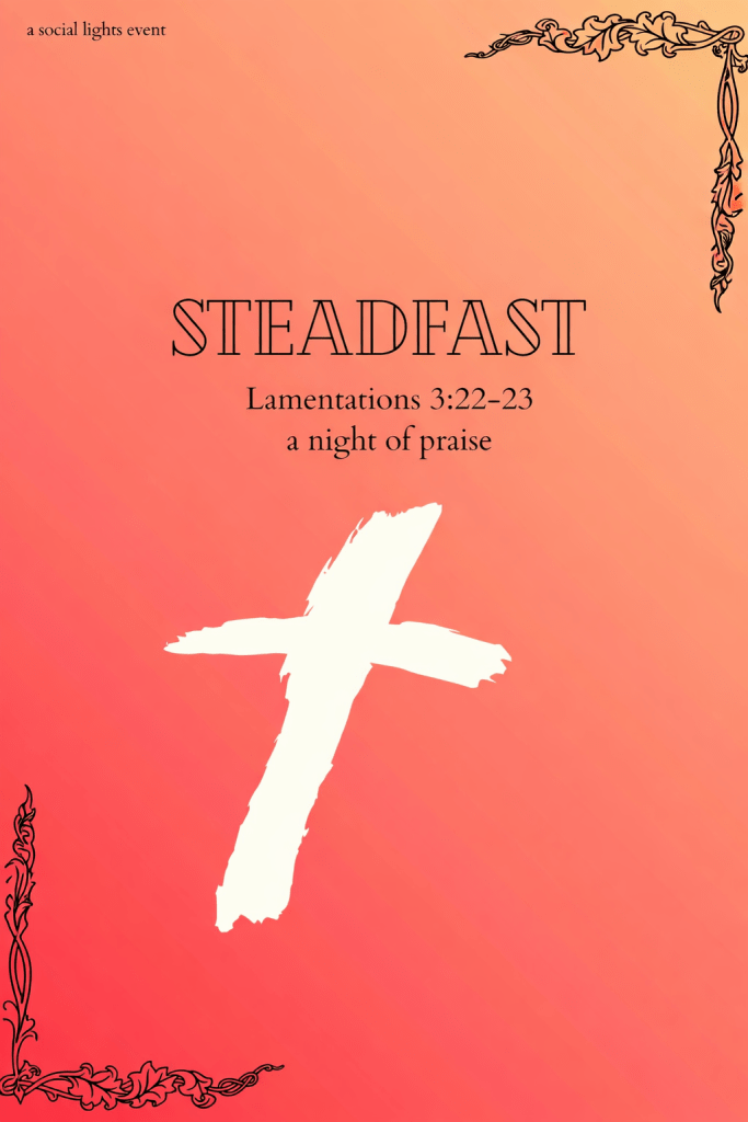 Join us for an uplifting evening of worship, reflection, and community at Steadfast, a Social Lights event centered on faith and praise. Step away from distractions and come ready to encounter a meaningful night focused on what truly matters.