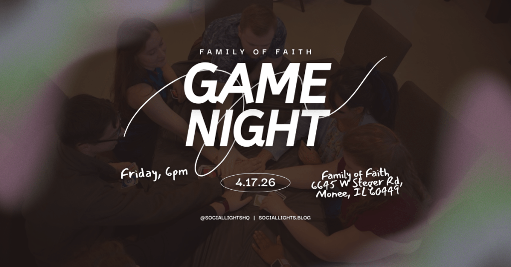 Social Lights is delighted to be partnering with Family of Faith church in Monee to share their Food, Fun, and Fellowship evening with you all! On every third Friday of the month, this community-minded congregation hosts an evening of games, fellowship, and delicious dinner for anyone hungering for true camaraderie.